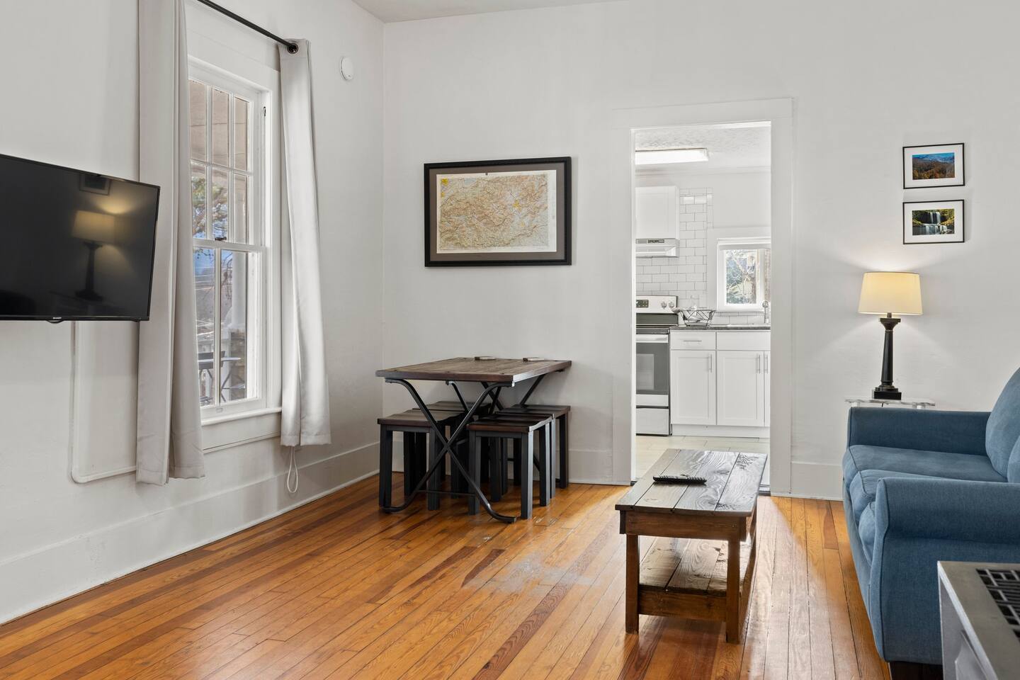 Charming mountain retreat in the heart of Black Mountain! This spacious one-bedroom suite is perfect for couples or solo adventurers. Located just steps from the Downtown Historic District, you can easily walk to famous shops, restaurants, and breweries. Enjoy a fully-equipped space with fast Wi-Fi and a cozy atmosphere. This queen size bed suite is on the main level of the building.