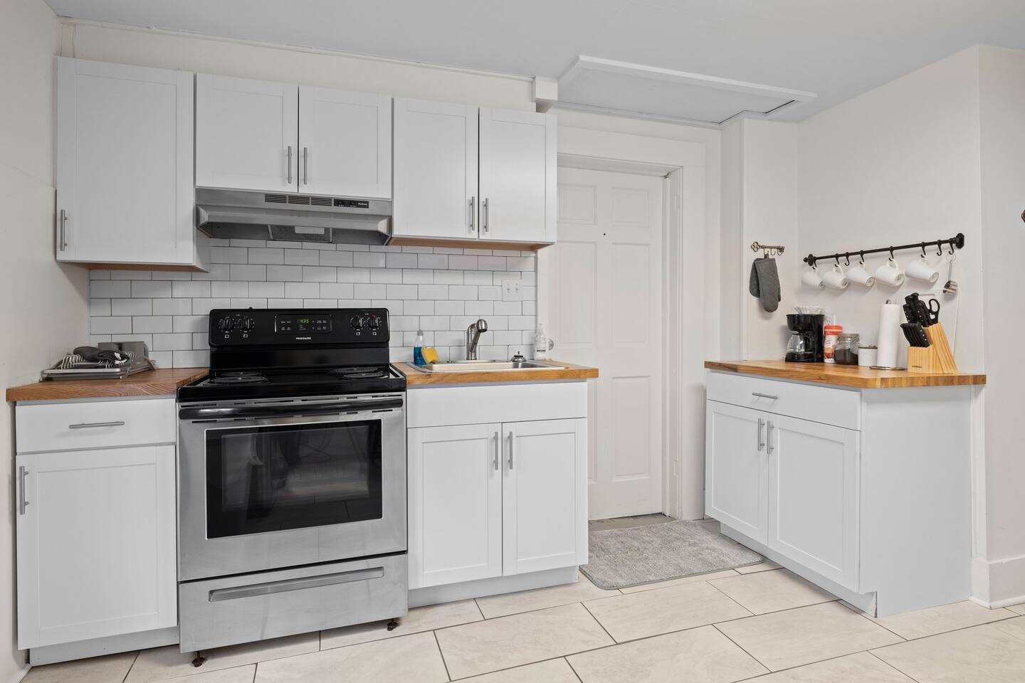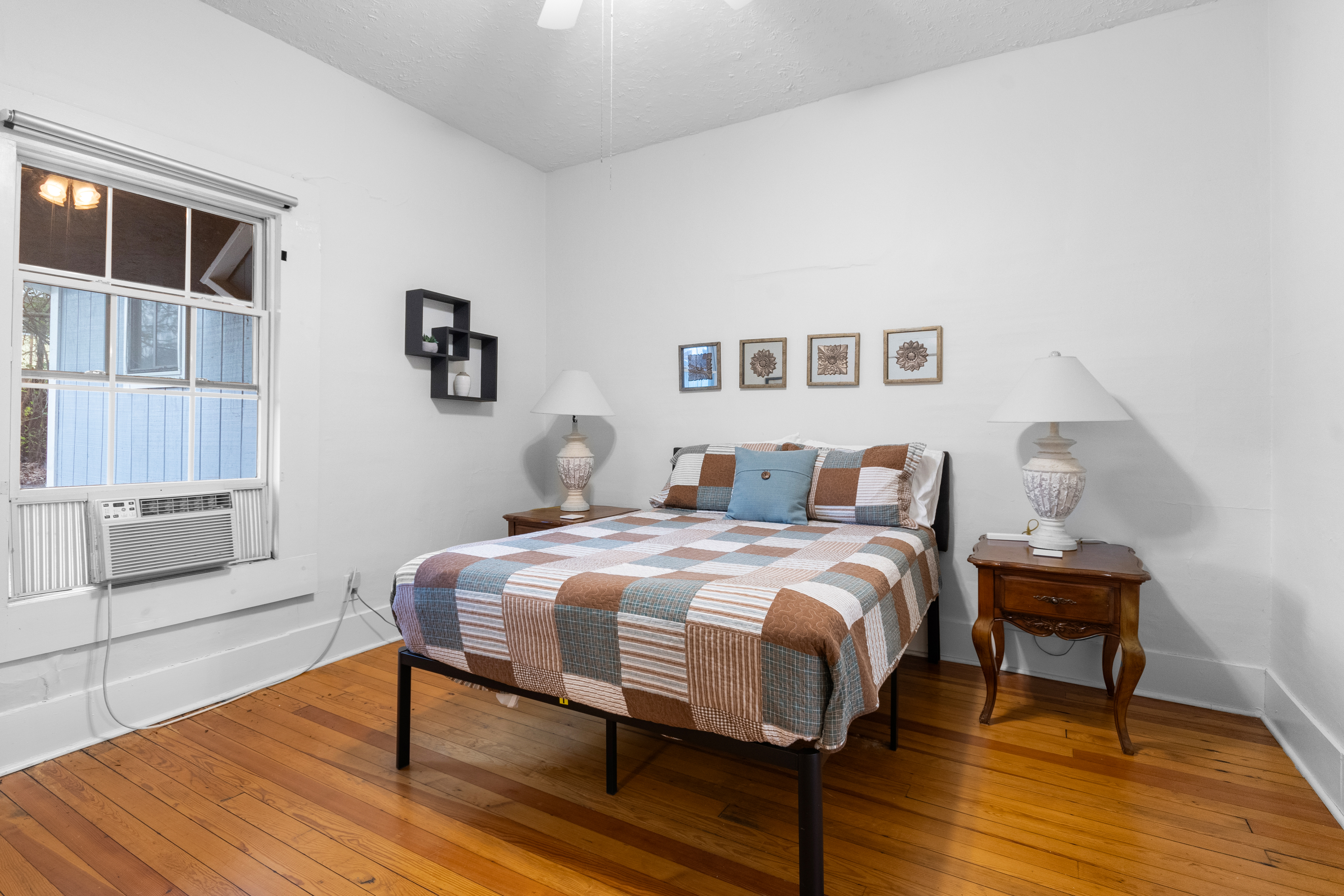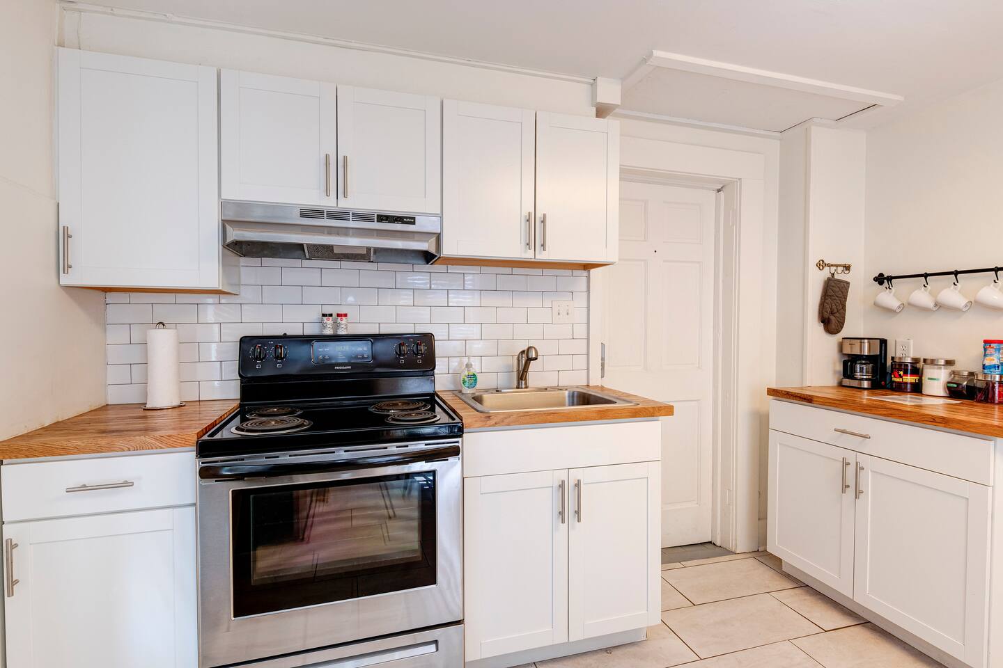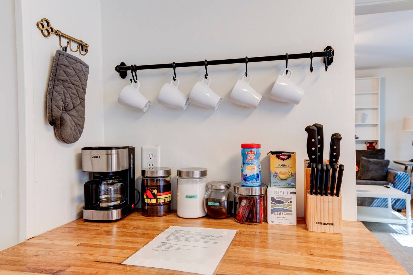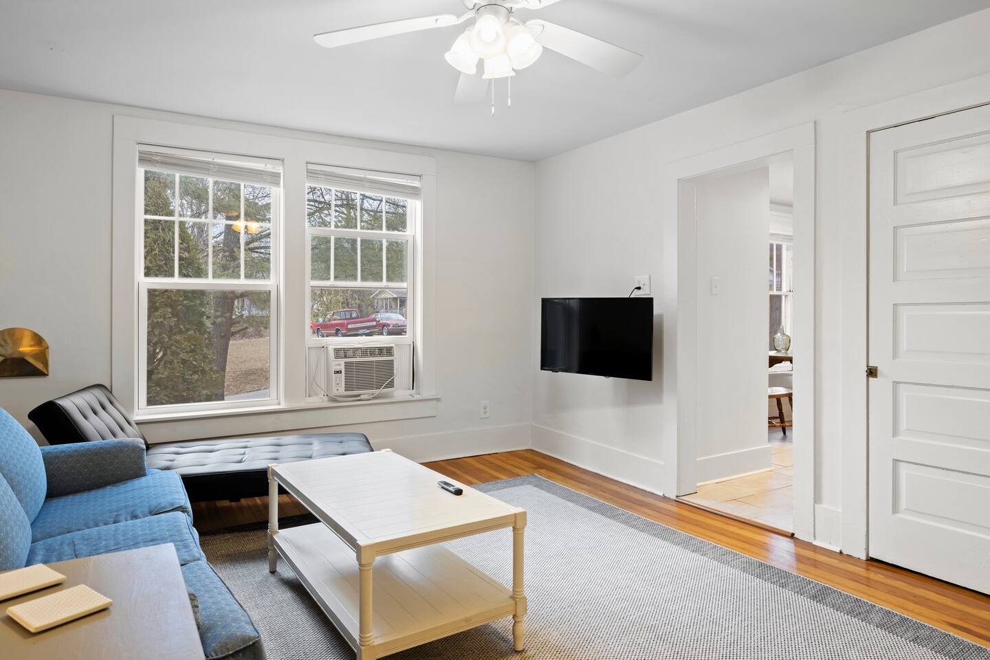 Black Mountain Lodge has five units, each with a separate entrance. The door for Unit 2 is on the ground level located around the back of the building. The entry to this 659 sq ft space takes you to the kitchen, which is a generous size and includes a dining table. It is stocked with all the necessities you would expect for cooking and dining, as well as a drip coffee maker. The living room adjoins the kitchen, and has a large comfortable seating area to relax. There is a smart tv you can use to log into your streaming subscriptions, and complimentary wifi. The bedroom and bathroom are just next to the living room. There is 1 queen bed for sleeping up to 2 guests. We do not have a sleeper sofa. Due to fire zoning regulations we cannot allow cots or air mattresses on the floor. This home is over 100 years old and sits among large, old trees. Unfortunately due to this setting, insects will often make their way into the home. This is a non smoking property. We welcome pets, and if you bring one please be considerate of other groups in the building. Please no dogs that bark if you are away. Dogs must be in a crate if left alone. Keep dogs on a leash at all times. Thanks!